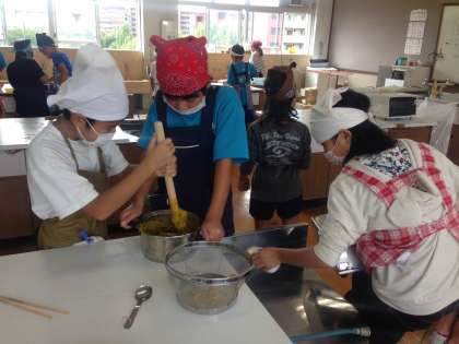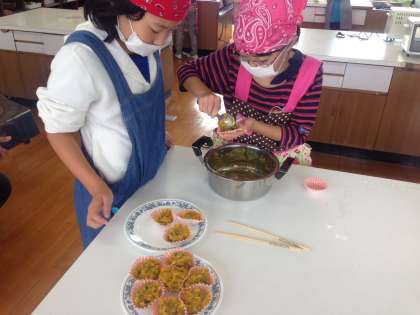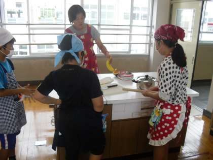 5年生は,学級活動として前期の終わりとして「お楽しみ会」を行いました。今日は,調理実習で学んだことを生かして「パンプキンパイを作ろう!」でした。かぼちゃとバナナを使って,おいしいパイを作ってみんなでいただきました。
