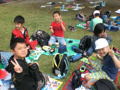植物を見て楽しんだ後,お待ちかねのお弁当を食べました。お弁当をぺろりと食べ,広い芝生でおにごっこをしたり,芝生に寝転んでみたりと,思い思いに過ごしている様子でした。