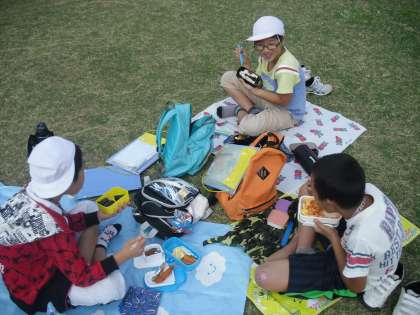 京都駅から梅小路公園まで歩き,待ちに待ったお弁当の時間です。愛情いっぱいのお弁当を広げて,疲れも吹っ飛びました。お弁当の後は,鬼ごっこをしたり,だるまさんが転んだをしたり,たっぷり遊ぶ時間もありました。どんぐりがいっぱい落ちていたので,袋にどっさり拾っている子もいました。