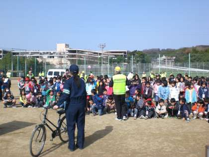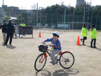 3月14日の日曜日に,石田仮設グラウンドにて「自転車安全運転教室」が開催されました。醍醐地域の10小学校の1〜3年生がたくさん参加しました。