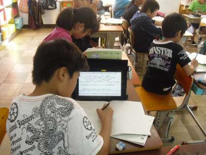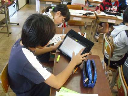 5年生は道徳の時間「失われゆく緑」の題材で学習した後,自然環境を大切にするために自分たちでできることをタブレットを使って調べました。