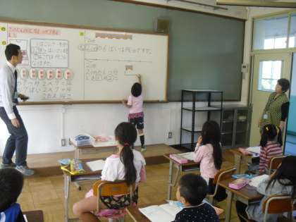 2年生は1校時に「算数」の学習をしました。かけ算の九九の唱え方を練習して九九を使った練習問題をしました。のびのびコースもぐんぐんコースも集中してがんばりました。