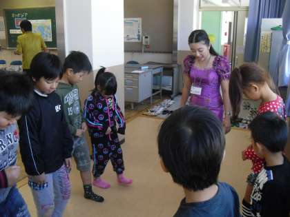 「カンボジア」のコーナーでは,3つに分かれて,ダンスやゲームを教えてもらったり,映像でカンボジアのことを学習しました。