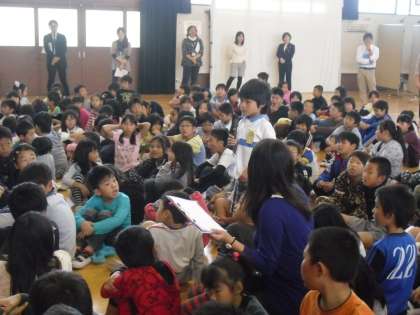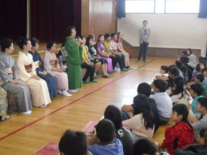3つのコーナーを体験した後,体育館に戻って閉会式を行いました。まずは,それぞれの国のコーナーを体験した子ども達が,感想を発表しました。