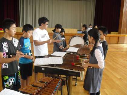 今日から体育館で音楽発表会に向けての練習が始まりました。体育館の準備をしてくれた6年生が早速練習をしました。