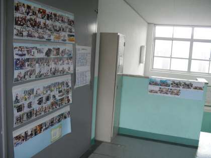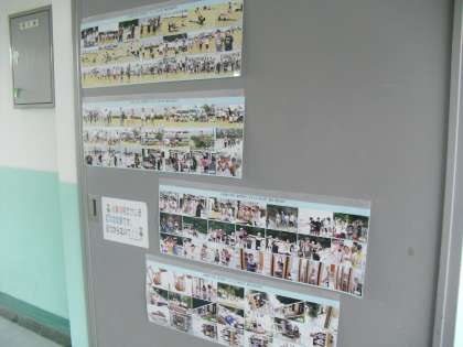 9月に行った修学旅行の写真ができて北校舎3階の廊下に展示されています。まだ一月も経っていないのにとても懐かしそうに見ていました。