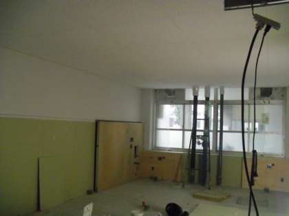 北校舎のトイレ改修工事が進んでいます。今は,天井や側面の壁もできてきました。あと完成まで1ヶ月となりました。