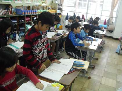 5年生は国語で「大造じいさんとガン」の学習をしています。この物語を自分なりにとらえて朗読できるように登場人物の心情を考えています。