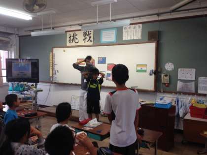 ゲームの最後にはスー先生と勝負をし子どもたちが勝利をおさめ,終始楽しい雰囲気でした。