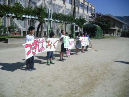 近づいてきた「支部育成学級合同運動」に向けて,今日はあゆ学級全員で開会式や閉会式の司会の練習をしました。