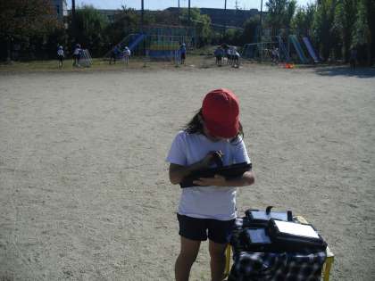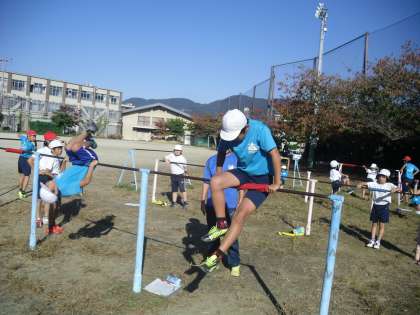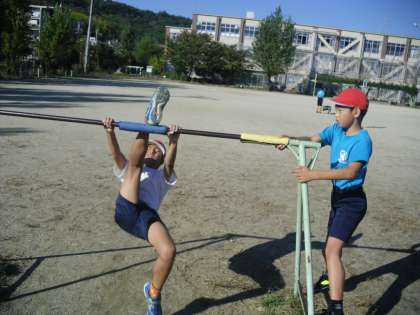 5年生は体育で鉄棒運動を行っています。自分のやりたい技のポイントをタブレットで確認したり,友だちと教えあったりしながら,練習をしていました。
