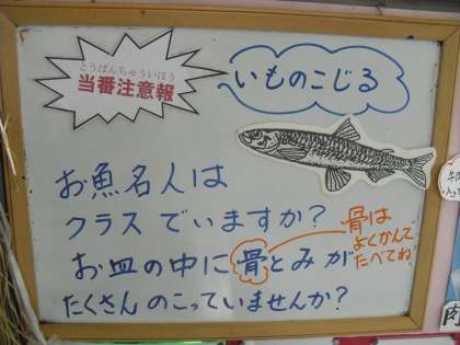 今日の給食は,「芋のこ汁」「ニシンの煮付け」「ブロッコリーのおかか煮」「ご飯」「牛乳」でした。