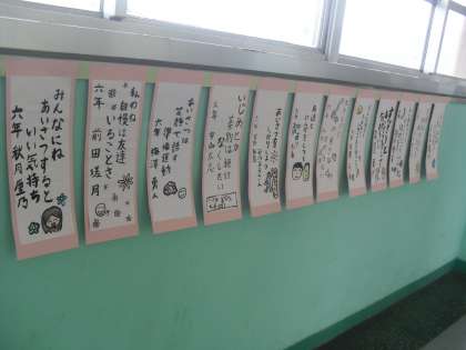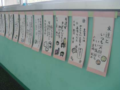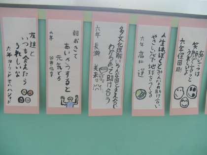 6年生が作った人権標語が教室前の廊下に掲示されています。