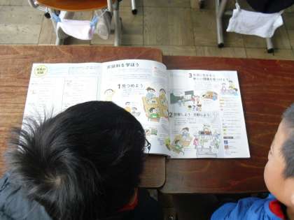 5年生では,家庭科の学習をします。家庭科では,どのようなことを勉強するのか,教科書を見て確認しました。5年生の家庭科では,ナップサックを作ったり,調理実習をしたりします。日々の生活に欠かせない力を身につけていってほしいと思います。