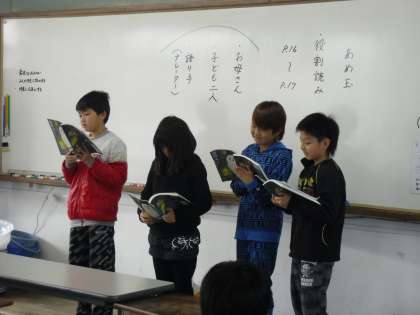 「あめ玉」の音読発表をしました。班ごとに発表をしました。どの班も工夫して発表をしていました。1年間を通して,もっとはっきりと大きな声で読めるようにがんばってほしいと思います。