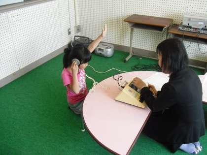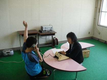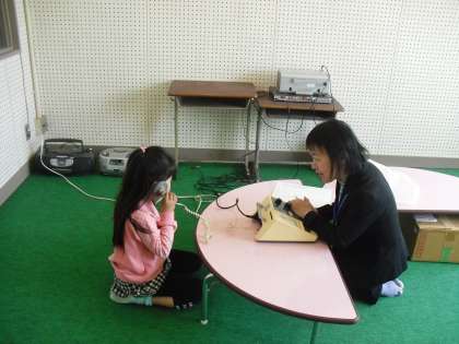 聴力検査は放送室で行いました。子ども達が必死で聞こうとしている顔は真剣そのものです。