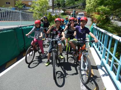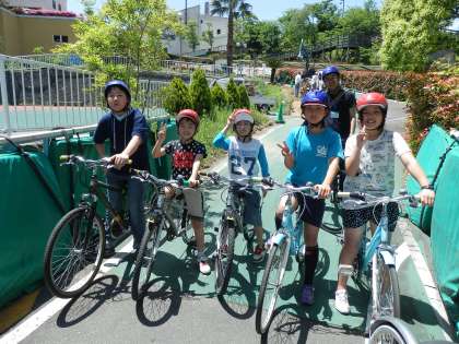 グループごとに3kmのサイクリングコースに行く前に1枚☆