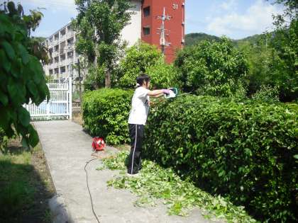 学校にはたくさんの樹木があります。今が一番,枝のよく伸びる季節です。いつも管理用務員さんがきれいに樹木を剪定してもらっています。