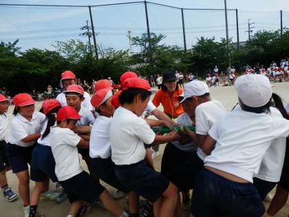 「ひっぱんネン〜引いて引いてひっぱって〜」では,4年生と一緒に頑張っていました。