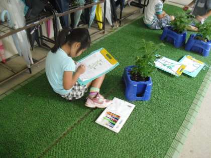 2年生の子ども達は,一人一人が丹念に育てているミニトマトの観察をしました。葉がだんだん大きくなってきたことやトマトができてきていることをお友だちと確認しながら丁寧に観察をしていました。早く大きくなあれ!