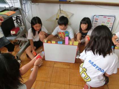 朝9時から10時の1時間で,宿題を確認したり,工作でペットボトルを使った『空気鉄砲」を作ったりして楽しみました。