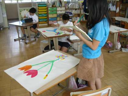 とてもきれいな花が咲きました。楽しみながら,そして,とても真剣な表情で描いていました。