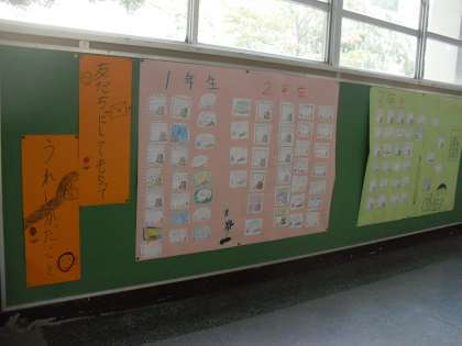 昨日,人権委員会で作成した「友だちにしてもらってうれしかったこと」のカードを職員室前に掲示しました。