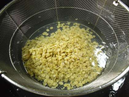 打ち豆汁は,大豆を水につけてやわらかくしたものを,平たくつぶし,乾燥させたものです。福井地方に伝わる食品です。雪が多く降る冬でも食べる物に困らないように昔の人の知恵や工夫がいかされているのですね。今日はみそ汁の中に油揚げ・大根・にんじんと一緒に入れています。見た目はちょっとコーンフレークみたいです。