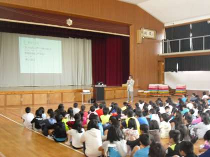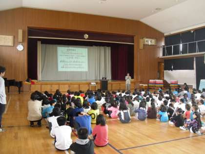 はじめに校歌を元気よく歌い,校長先生のお話を聞きました。