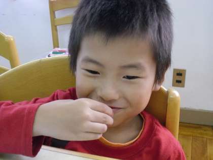 また,1年生は育てていたサツマイモを収穫し,芋のつるのをハサミで3cmくらいに切り,栄養教諭の北山先生が佃煮にしてくれました。「さくらもちの葉っぱの味みたい」とか「甘くておいしいからもっとちょうだい!」とたくさん食べる子もいました。