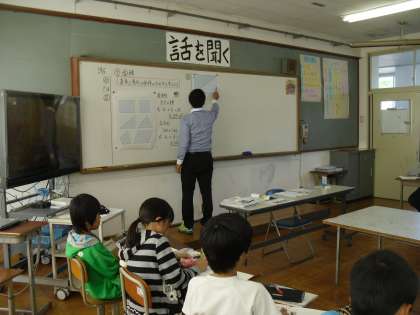 長方形や正方形の面積の求め方を振り返ったり,直角三角形の面積の求め方を考えたりしました。
