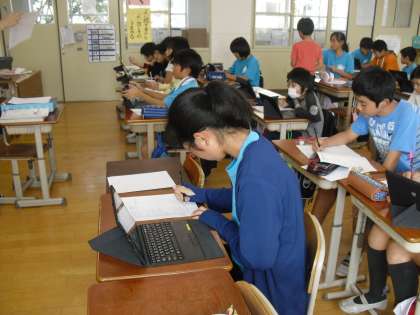 6年生は随分スムーズにタブレット型PCを使えるようになってきました。