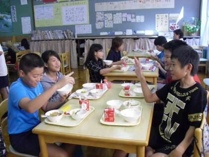 ランチルームの5年生は「もっとご飯ほしいわ」「肉じゃが足りひん」「ごま酢煮しゃきっとしてるな」と言いながら食べていました。久しぶりのリンゴゼリーのおかわりじゃんけんに大盛り上がりでした。
