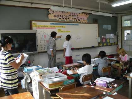 たくさんの先生が見守る中,一生懸命に学習に参加していました。