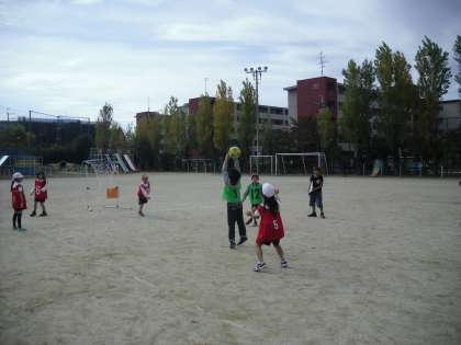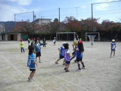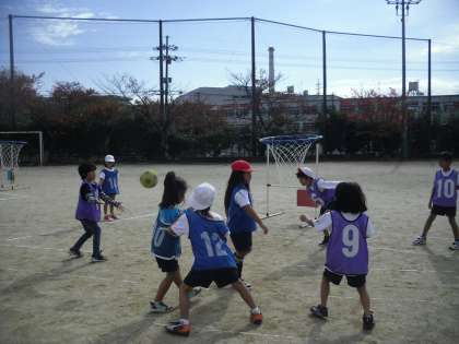 ルールやゲームの進め方にもなじみ,攻め方や守り方を工夫して,ゲームを楽しんでいます。
