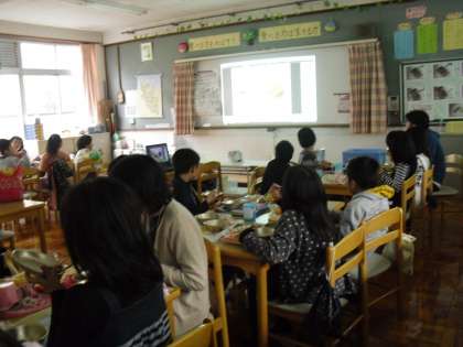 ランチルームの4年2組は和(なごみ)献立についての映像を見た後,感想を書いてもらいました。「こんなに和風の食べ物がおいしいとわかりました」「さつまいもは甘くて口に入れるとうまみが広がった」「秋の恵が体に伝わります」「秋の恵のみそ汁のしめじが口の中でとろけておいしかったです。また,和献立を作ってください」「京都には昔から受けつがれてきた食べ物がたくさんあることがわかりました」「作ってくれる人に感謝したいです」「昔の京都の味がしました。柿は甘くてシャキシャキしていました。」「あっさりしていてこの季節にぴったりでした」などなど・・・。