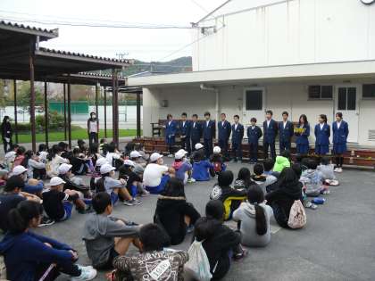 いつも近くに見ている中学校ですが,中学校の中に入ると,子ども達も少し緊張していました。