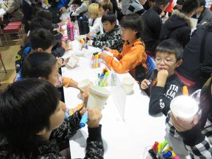 名前を入れたり,キャラクターを描いたり,自分で模様を描いたりして,マイカップ作りを楽しんでいました。