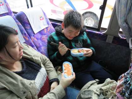 愛情たっぷりのお弁当をおいしくいただいていました。朝早くからありがとうございました。