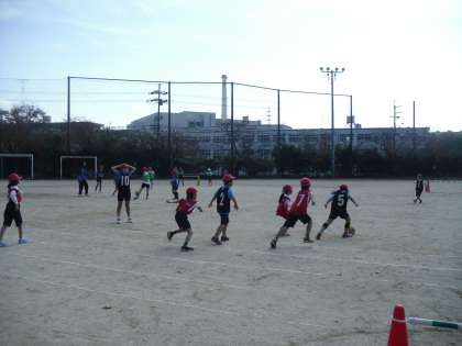 思いっきりシュートすること,ボールを自分からもらいに行くこと,ゴール近くで待ってシュートすることなど,グループが相談をしたり作戦を立てたりしながらラインサッカーを楽しんでいました。