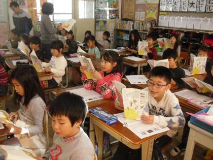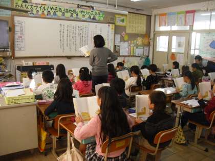 国語の教材「三年とうげ」の音読をしているところです。