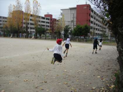 2年生では体育の時間に前半は持久走,後半は縄跳びをがんばっていました。