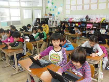 今日は、1年生の「タブレットPCをつかおう」の2回目でした。