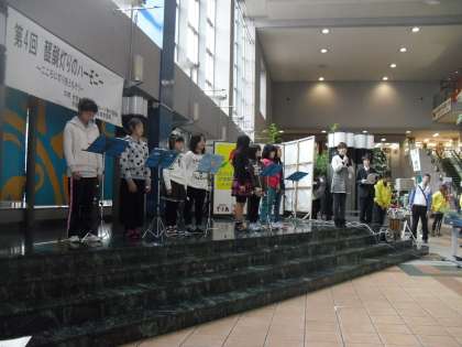 小栗栖小学校からは部活動音楽部が出場し,美しい歌声と季節柄ふさわしいサンタのメドレーを披露しました。