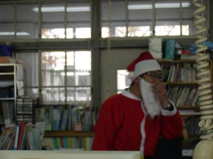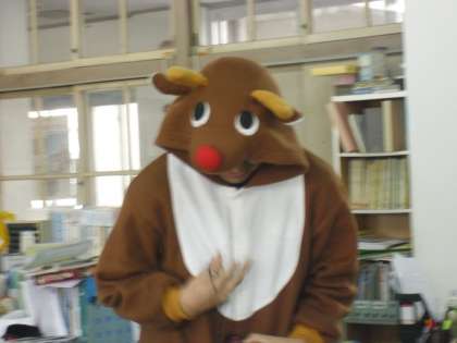 そんな子どもたちのために,小栗栖小学校にあわてん坊のサンタクロースとトナカイがおからケーキを届けに来てくれました。