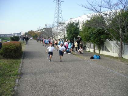 初めての持久走大会になった1年生は,9時40分にスタートしました。