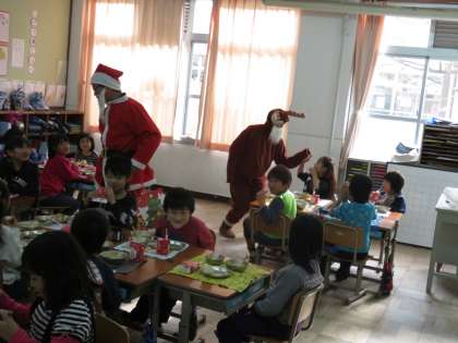 子どもたちのために「おからケーキ」を運んでくれたサンタとトナカイ。子どもたちの笑顔がたくさん増えますように。