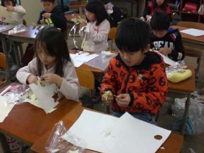 2年生では,ステンシルローラー版画という版画に取り組んでいます。
