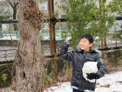 今日の大雪に運動場に出て楽しい雪遊びをしました。