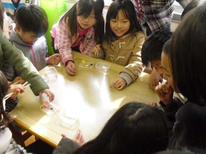 ランチルームの4年生はチャイムまでに全員が食べ終わり,ランチルームの「豆つまみ」セットでお箸の練習で大盛り上がりでした。